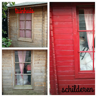 Op de foto`s kun je zien dat het echte hard nodig was. Ik was het saaie bruine kleurtje zat en heb er dus rode verf opgesmeerd. Wat en pijnlijk karwei. Maar voorlopig is het weer klaar .