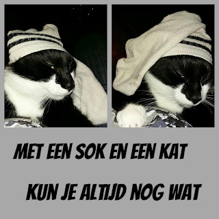 Tijdens het maken van deze foto lag hij bij mij op schoot. We zagen een hond met een kerstmuts op tv. We kwamen op het idee dat dat Karel ook wel leuk zou staan, maar bij gebrek aan een kerstmuts werd het een sok die klaar lag om een sneeuwpop van te maken. Het maakt Karel niet uit, zolang hij maar aandacht krijgt. En als hij geen aandacht krijgt dan eist hij het gewoon op door op de laptop te gaan liggen, Onze lieve sul.
