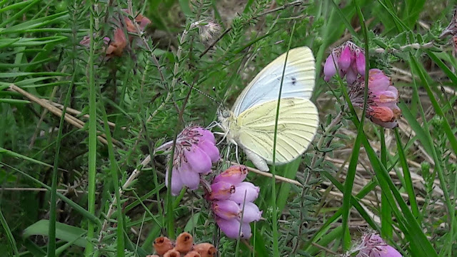 Ik heb alweer een ander soort vlinder gespot. Deze is vooral wit met een klein beetje paars. Ze zitten vooral op bramenstruiken. Erg mooi om te zien hoe zij af en aan vliegen naar de verschillende bloemen .
